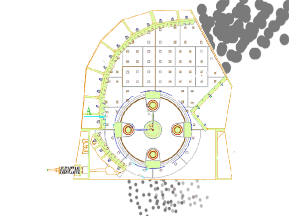 傳統的錘式破碎機一般通過不同縫隙大小的篦板來對骨料的細度進行控制,其出料模式為:將篦板安裝于破碎機腔的下部,當物料在破碎機腔內經過反復破碎后,符合出料粒度的物料
