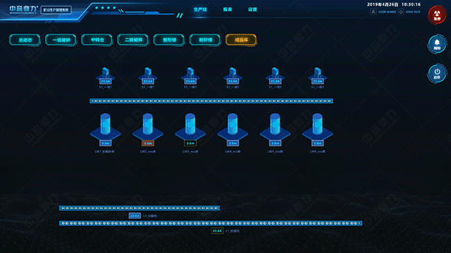 3、石料生產(chǎn)線生產(chǎn)能力及各類規(guī)格的成品石料的產(chǎn)量、日/周/月累計(jì)產(chǎn)量、裝置工作負(fù)荷、運(yùn)行時(shí)間等數(shù)據(jù)的實(shí)時(shí)監(jiān)測解析;