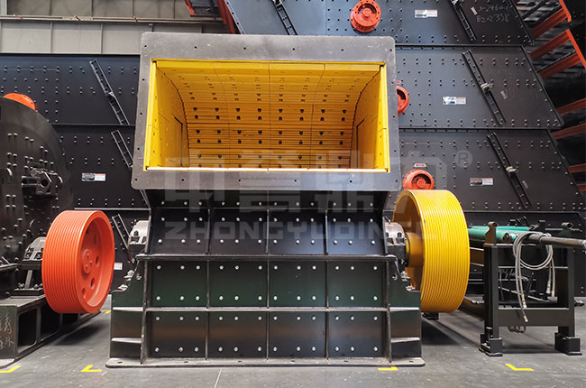 通過電動機帶動轉子的高速旋轉,由于轉子的高速旋轉,當物料進入板錘作業區時,受到錘頭的沖擊、碰撞、剪切等作用而破碎,已破碎的石料被拋到反擊裝置上得到再次破碎,之后被彈回板錘作用區重新破碎,石料經過多次反復破碎直至合格被排出。