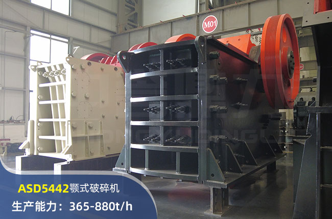 ASD5442顎式破碎機(jī)進(jìn)料口尺寸1370×1070mm,進(jìn)料粒度≤1020mm,出料大小≤90mm,電機(jī)功率185kw,時(shí)產(chǎn)量365-880噸左右。