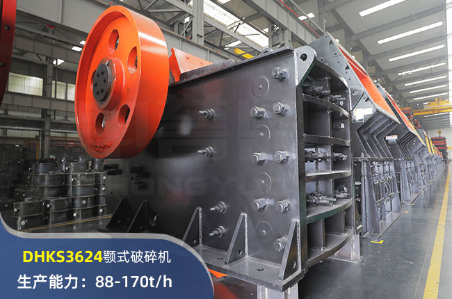 DHKS3624顎式破碎機(jī)進(jìn)料口尺寸920×600mm,進(jìn)料粒度510mm,出料大小65-130mm,電機(jī)功率75kw,時(shí)產(chǎn)可達(dá)170噸左右。
