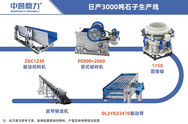 常見的硬巖有花崗巖、玄武巖、石英石、火山巖等物料,可以通過ZGC1238給料機、PE800×1060顎式破碎機、1750圓錐破、2YKZ2670振動篩、輸送機等設備進行處理,具體設備配置清單如下: