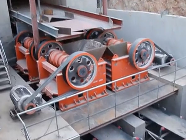 年產50萬噸,采用PE600×900顎式破碎機+4臺PEX250×1000細碎鄂破+VSI7611沖擊式制砂機+配套設備方案,適用于鵝卵石等硬巖破碎,因投資預算不高,故中細碎設備采用細碎鄂破機,如預算充足,可以直接采用一臺圓錐破碎機。