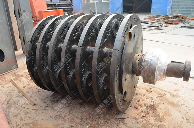 反擊錘式破碎機(jī)轉(zhuǎn)子是主要零件,它由錘盤、端盤、隔環(huán)、錘頭、錘軸、主軸、皮帶輪、軸承和軸承座等組合。