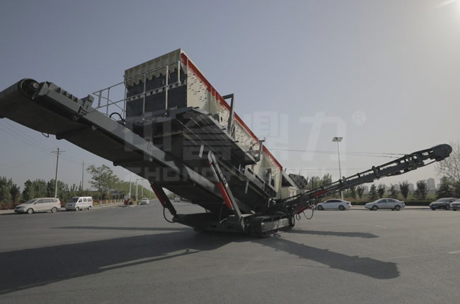 特點:輪胎式地盤,需要半掛車頭牽引移動,底盤較高,能適用于場地狹窄、復雜區域。輪胎移動式制砂機不損傷路面,可以在普通公路上及作業區內靈活行駛,適用于建筑垃圾、道路建設等.