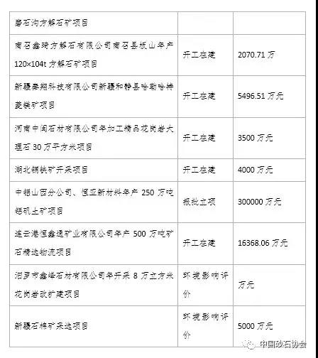 湖南青猴洞1000萬元建筑石料用灰巖礦開采項目;廣東橫磊山礦區1500萬建筑石料用灰巖礦建設項目;扶綏縣東門鎮岜樓村琴準屯達獨山1000萬石灰巖礦開采加工項目;巴東縣石羊山礦區5000萬建筑石料用年采50萬噸灰巖礦開采項目;汨羅市鑫峰石材有限公司年開采8萬立方米花崗巖改擴建項目。