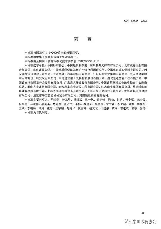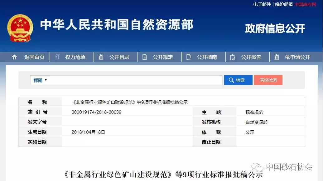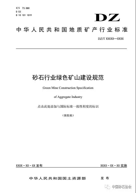 按照土資源行業制定程序要求和計劃安排,中砂石協會組織編制的《砂石行業綠色礦山建設規范》報批稿已通過土資源化技術委員會審查,現予公示。同時進行公示的還有《非金屬行業綠色礦山建設規范》等,共9項行業報批稿。