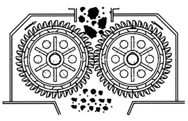 雙齒輥破石機:雙齒輥破碎破石機個旋轉方向相反的齒輥組成,齒輥轉動時輥面上的齒牙可將煤塊咬住并加以劈碎,給料由上部給入,破碎后的產物隨著齒輥的轉動從下部帶出,破碎產物的粒度由兩齒輥面之間的間隙決定,當大塊堅硬物料落入破碎腔不能被扎碎時,齒輥受力增大,可動軸承壓縮彈簧,增大兩上齒輥間隙,排出硬物,然后借彈簧的恢復力使可動齒輥回到原來位置。