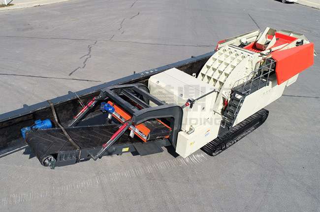 履帶式移動破石機:履帶底盤機架,會對路面造成損壞,不適合長距離運輸,但履帶抓地力強,可以爬坡,能適應各種復雜、惡劣的環境。可用于礦石、尾礦的破碎。