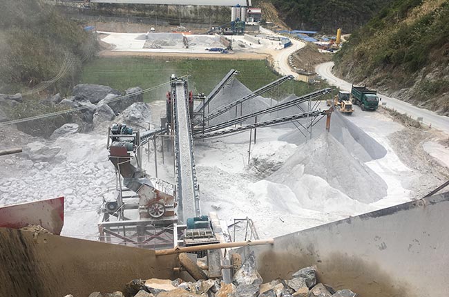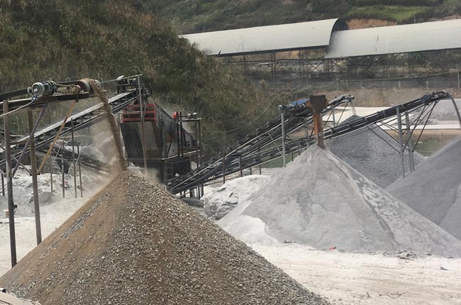 廣西南寧時產(chǎn)200噸石子生產(chǎn)線選用除土型給料機、一臺錘式破碎機、一臺4層篩網(wǎng)的振動篩,生產(chǎn)線生產(chǎn)4種不同規(guī)格的石料。