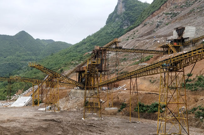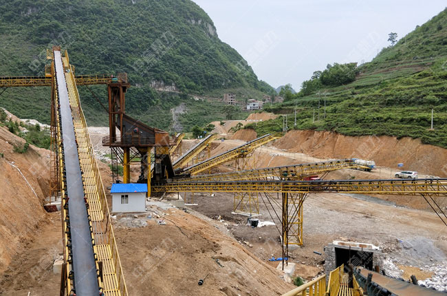 該條小型砂石料生產線的生產能力在200-250噸/時,是2018年3月開始承建,5月底建成投產,為破碎+制砂型砂石生產線。