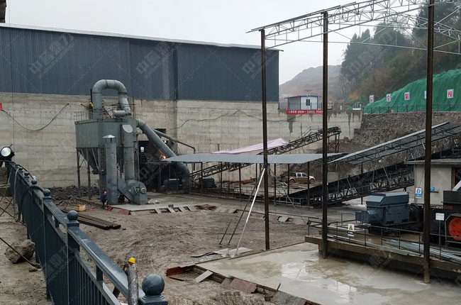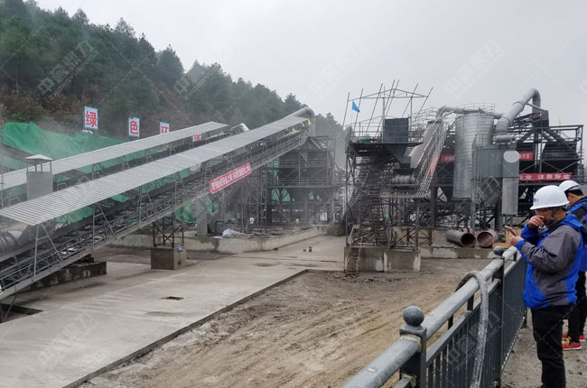該項目于16年12月試機投產,主要生產配方砂,中譽鼎力為其配置了“喂料機+1615重錘破+1218雙轉子制砂機+振動篩+除塵器”,生產的成品砂石料可控,級配高。