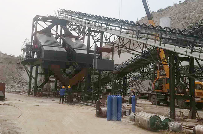 該產線是繼時產3000噸砂石生產線項目之后,河北武安白沙石料廠再次與河南中譽鼎力公司合作,建成的一條日產8000噸左右的石料生產線,破碎設備上選擇了PCZ1815和PC1216型號的錘式破碎機,破碎比大,出料粒型好。