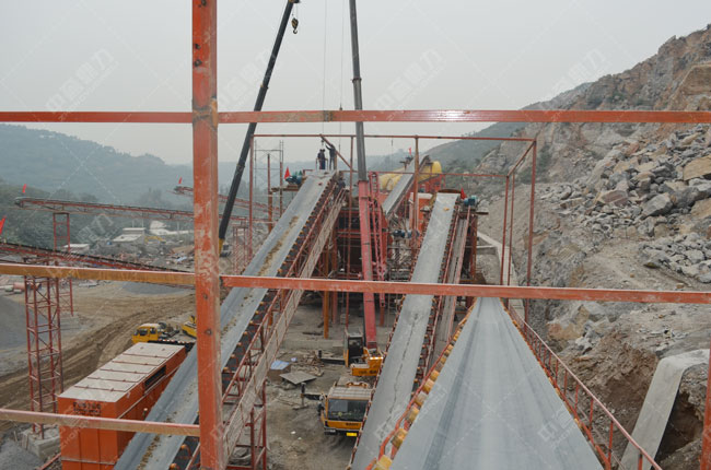 中譽(yù)重型錘式破碎機(jī)PCZ1615+PC1213+中譽(yù)振動(dòng)給料機(jī)ZG1538*1臺(tái)+中譽(yù)圓振動(dòng)篩3YK1460*2臺(tái)、2YK1460*2臺(tái)。