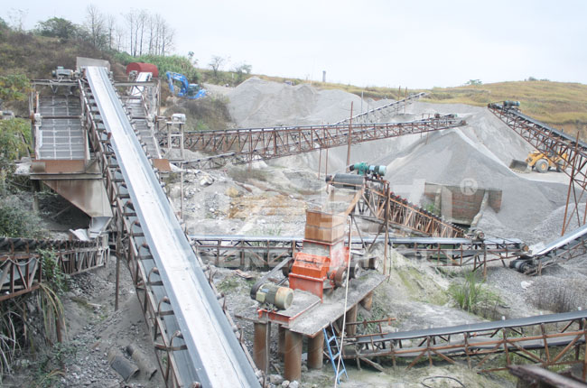 項(xiàng)目是處理石灰石料,要進(jìn)行破碎生產(chǎn)不同規(guī)格的石子,同時還要生產(chǎn)部分沙。中譽(yù)鼎力為其配置的是“錘式破碎機(jī)+雙轉(zhuǎn)子制砂機(jī)”。