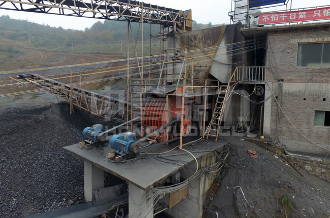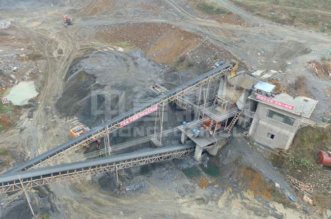 此項目建設(shè)較早,為2013年建設(shè)并投產(chǎn),是一條露天石灰?guī)r破碎加工生產(chǎn)線,通過現(xiàn)場實拍圖片可以看出,生產(chǎn)線是由喂料設(shè)備、錘式破碎機、振動篩、皮帶機組成。這個生產(chǎn)線工藝簡單,分級明確,可同時加工出多種不同規(guī)格的成品料。
