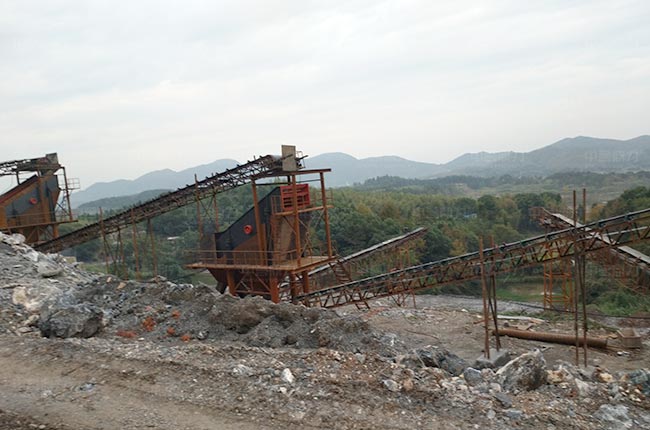 江西新余某石料廠建設的碎石生產線屬于300噸小型生產線,采用一臺一次成型的PCZ重型錘式破碎機,設計有3臺振動篩,分三道篩分工藝,成品骨料規格多。