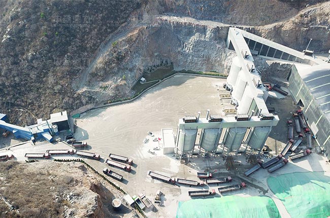 該項(xiàng)目主破采用PCZ1615重錘式破碎機(jī),整形破,制砂機(jī)及整套礦山設(shè)備,整個工藝進(jìn)行了封閉式環(huán)保設(shè)計(jì),還配置了自動裝車系統(tǒng),司機(jī)刷卡后,散裝機(jī)放料進(jìn)行自動裝車,大大提高了裝車速度。