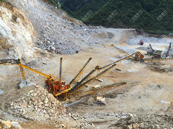 GYS300圓錐碎石機、4YK2160礦山振動篩 、GZD750×2500振動喂料機、B1000×30米、B800×31米運輸機等機械構成。