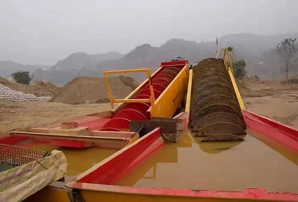 螺旋洗石機工作時,電機通過V型皮帶、減速機、齒輪減速后葉輪緩慢運行,砂石有喂料槽進入洗槽中,在葉輪的下翻滾,并互相破碎,除去覆蓋砂石表面的異物,此時傷害包覆砂粒的水汽層,以利于脫水;此時于沙石反方向的加水,形成強大水流,立即將異物及比重小的異物帶走,并從溢出口洗槽排出,完畢清洗影響,干凈的砂石由葉片帶走,后砂石從運行的葉輪倒入出料槽,完畢砂石的清洗影響,