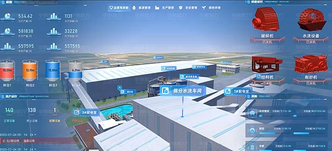 大屏實(shí)景三維展現(xiàn)整個(gè)廠區(qū),集生產(chǎn)、環(huán)保監(jiān)測(cè)、視頻監(jiān)控、礦山設(shè)備等數(shù)據(jù)進(jìn)行綜合監(jiān)測(cè)分析,對(duì)各類異常事件進(jìn)行可視化預(yù)警,促使管理者對(duì)砂石廠管理變得更加快捷高效、安全有序。