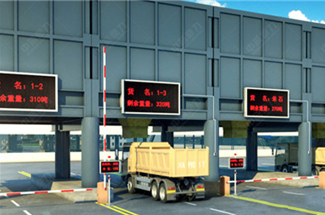 3、砂石料裝車系統自動保存裝車數據,并有LED屏實時展示已裝載石料重量,裝車完成,車輛即可駛出。
