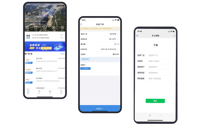 客戶可根據(jù)需求利用礦山易購app、微信小程序等平臺進(jìn)行自助下單,企業(yè)可根據(jù)散料自動裝車系統(tǒng)可視化交互界面進(jìn)行訂單查詢、派車、車輛狀態(tài)查詢、報表查詢等。